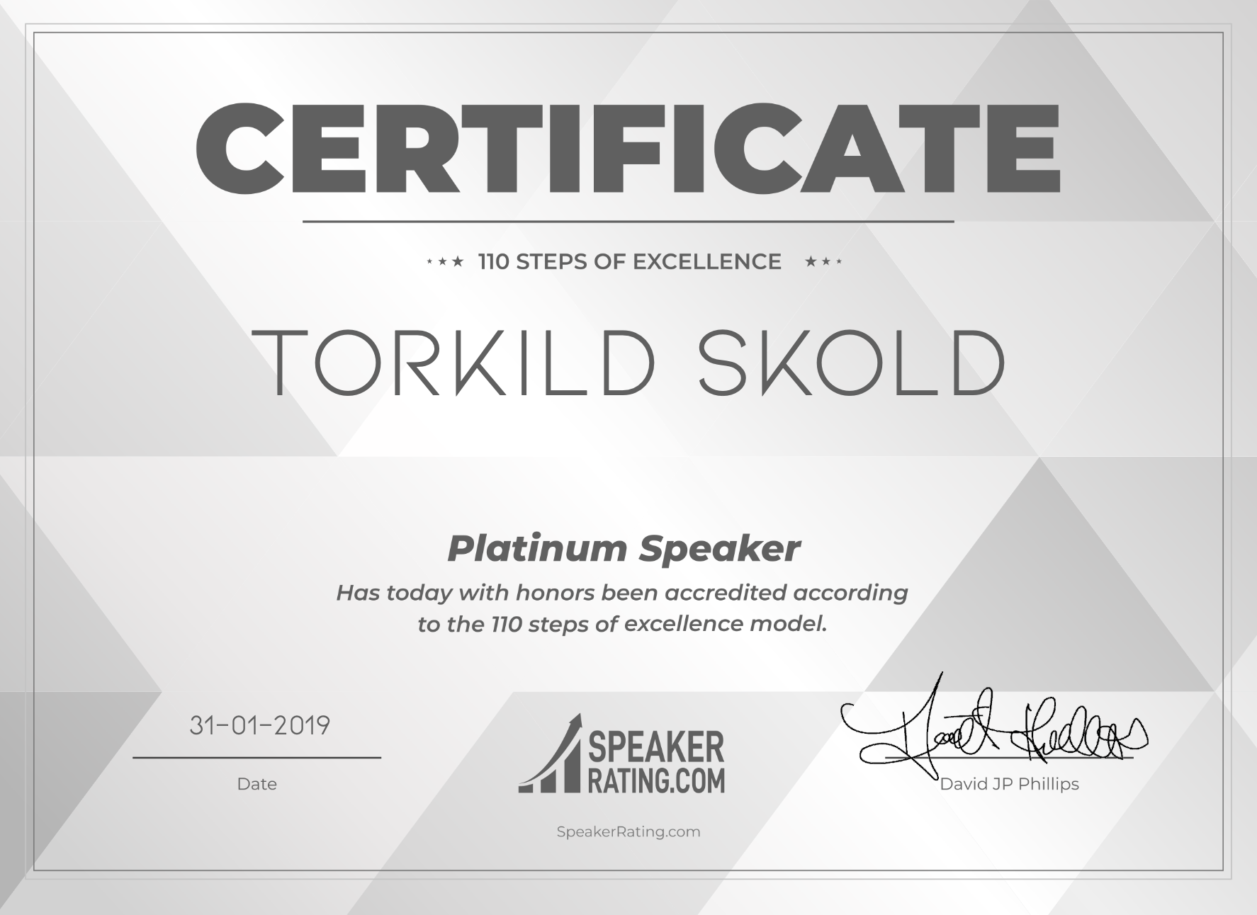 Torkild blev nyligen nominerad till stora talarpriset och är dessutom utsedd till en av landets mest populära föreläsare 2018. Vinnare av priset som 2011 års bästa nya föreläsare. Nyligen utsedd till Platinum speaker.